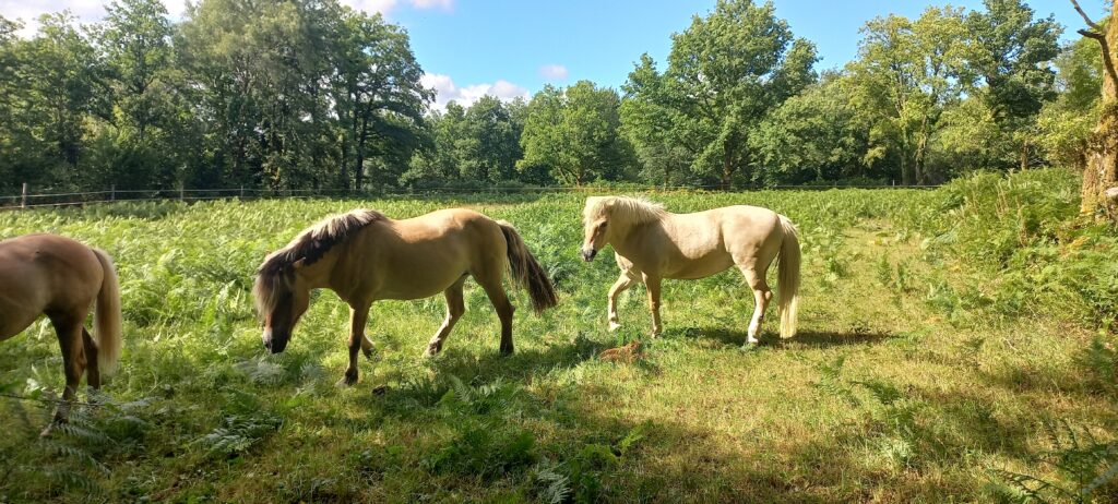 The horses at Le Paradis Caché du Limousin live outside all year round as a small herd.